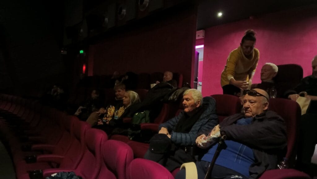 Στόχος της εξόρμησής μας ήταν η προβολή της ταινίας «Τα κάλαντα των Χριστουγέννων» — μια ταινία που μας ταξίδεψε στο πνεύμα των Χριστουγένννων, γεμίζοντάς μας νοσταλγία, χαρά και συγκίνηση.