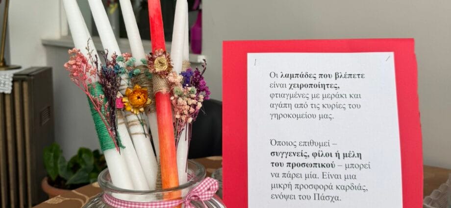 Αφού ολοκλήρωσαν τη διακόσμησή τους, τις διέθεσαν δωρεάν στην κεντρική είσοδο του Χαρισείου, ώστε κάθε επισκέπτης — συγγενής, φίλος, μέλος του προσωπικού ή προμηθευτής — να μπορεί να λάβει ως δώρο μια λαμπάδα, συνοδευόμενη από εγκάρδιες ευχές για Καλό Πάσχα, με υγεία και Φως.
