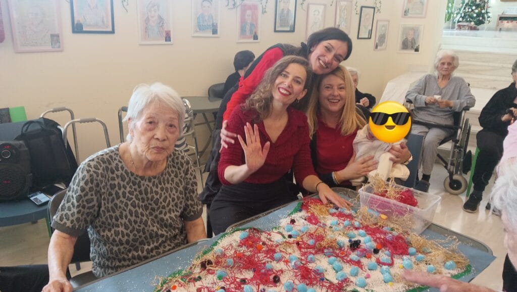 Κατά τη διάρκεια της επίσκεψης, μικροί και μεγάλοι τραγούδησαν και χόρεψαν μαζί, βιώνοντας τη ζεστασιά και τη συγκίνηση που αναδύεται μέσα από τη ζεστή σχέση παππού και γιαγιάς με το εγγόνι.