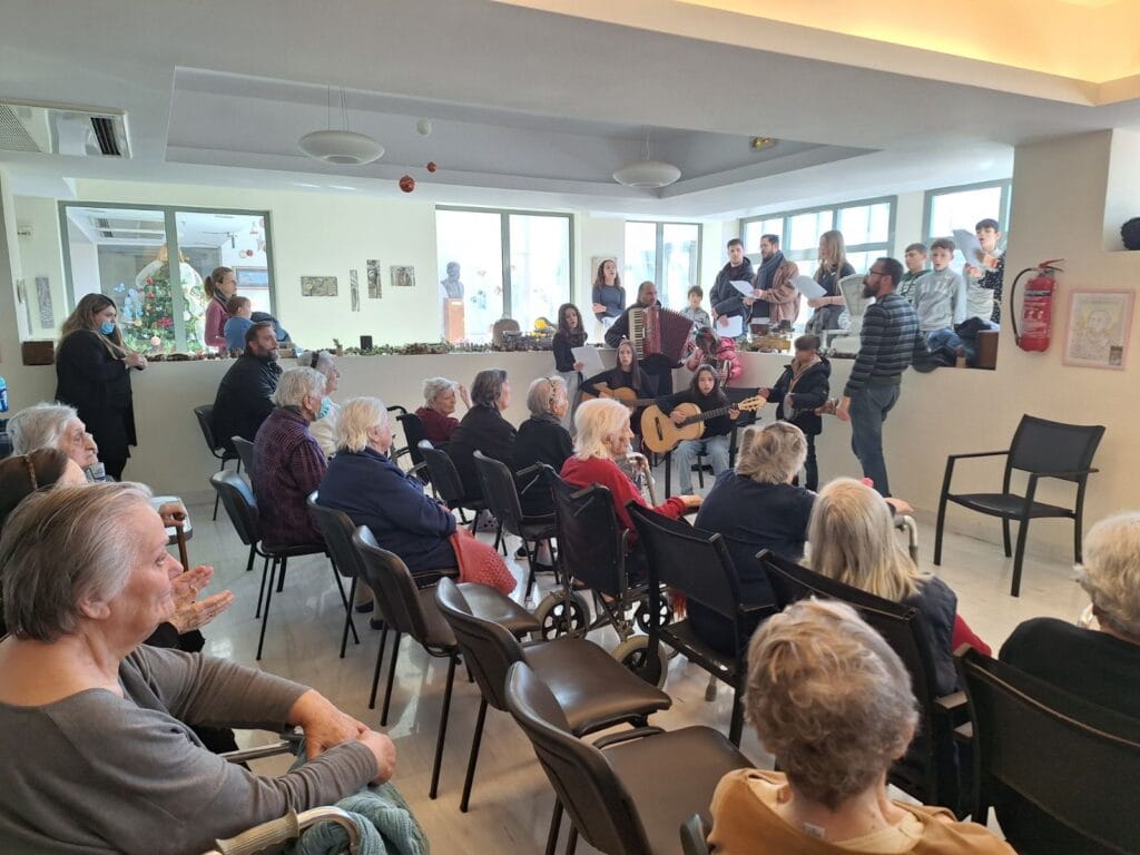 Με ένα γιορτινό πρόγραμμα και τη συνοδεία μουσικών οργάνων, τα μέλη της κοινότητας έψαλαν κάλαντα και τραγούδησαν Χριστουγεννιάτικα τραγούδια χαρίζοντας στιγμές χαράς και εορταστικής ατμόσφαιρας στους φιλοξενούμενους.