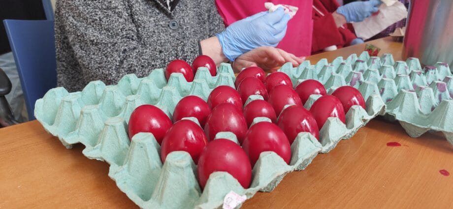 Άλλη σκούπιζε τα αυγά να μην έχουν σημάδια, άλλη ετοίμαζε τις αυγοθήκες, άλλοι ετοίμασαν το χρώμα. Κι όλα αυτά με πολλή χαρά και μια σπιρτάδα ζωντάνιας στα βλέμματα. Η κάθε μία είχε να πει μια ιστορία από το παρελθόν και συνήθειες των ημερών.