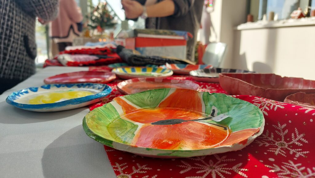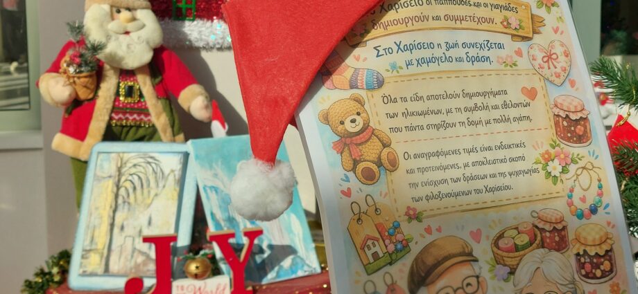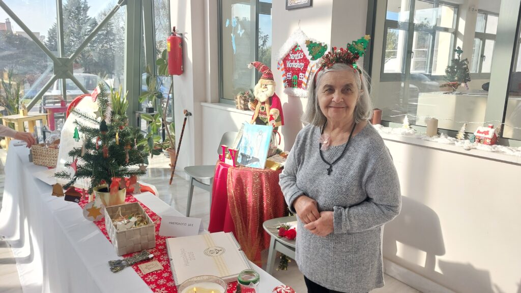 Το φουαγιέ της εισόδου στολισμένο γιορτινά, μαζί με έναν πλούσιο μπουφέ με κεράσματα, φιλοξένησε μεγάλο αριθμό από χειροποίητες δημιουργίες των ηλικιωμένων μας, αλλά και έργα εθελοντών, φτιαγμένα με μεράκι, αγάπη και έμπνευση.