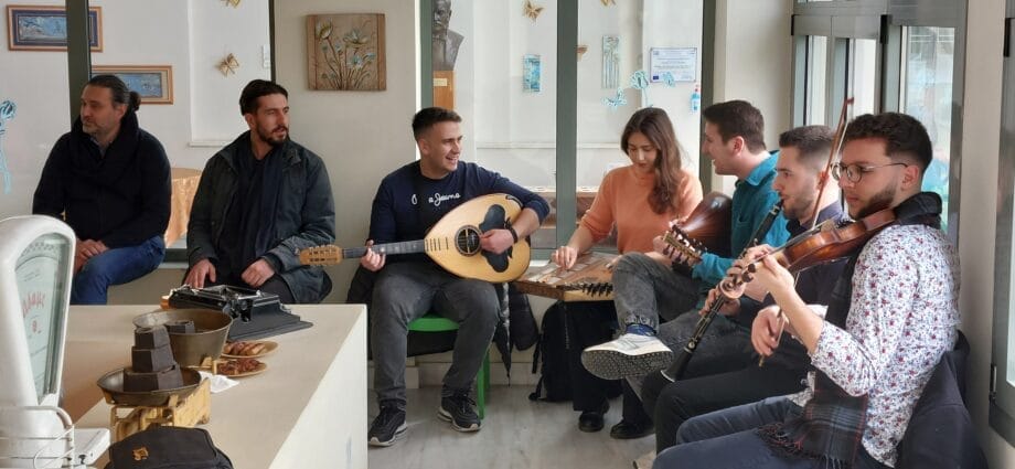 Η ορχήστρα, αποτελούμενη από κλαρίνο, βιολί, ούτι, κανονάκι και λαούτο, παρουσίασε ένα επιμελημένο μουσικό πρόγραμμα, συνθέτοντας ένα αυθεντικό παραδοσιακό γλέντι. Το κέφι άναψε γρήγορα, με τους ηλικιωμένους και το προσωπικό να συμμετέχουν ενεργά, χορεύοντας και τραγουδώντας γνώριμους σκοπούς.